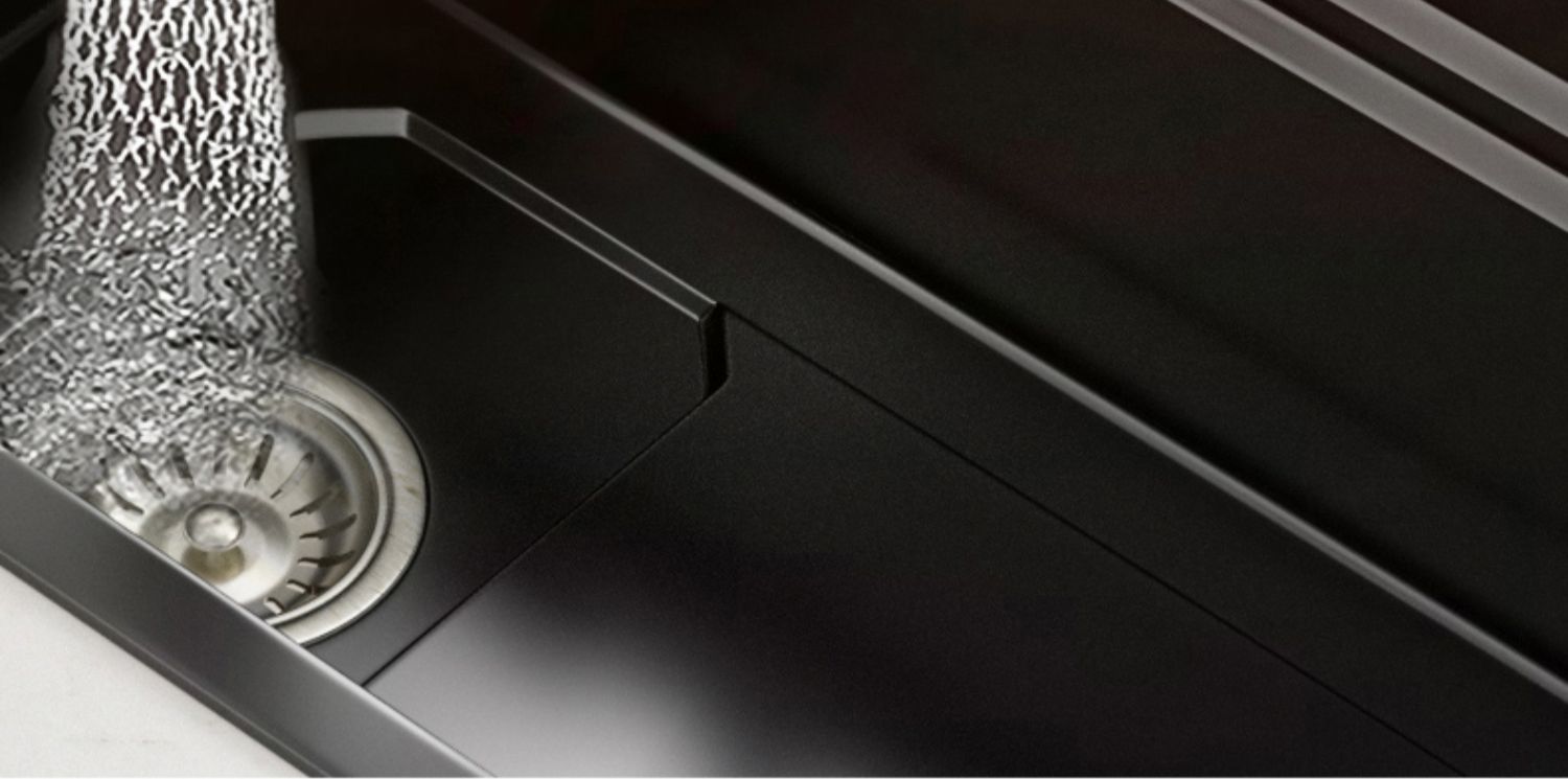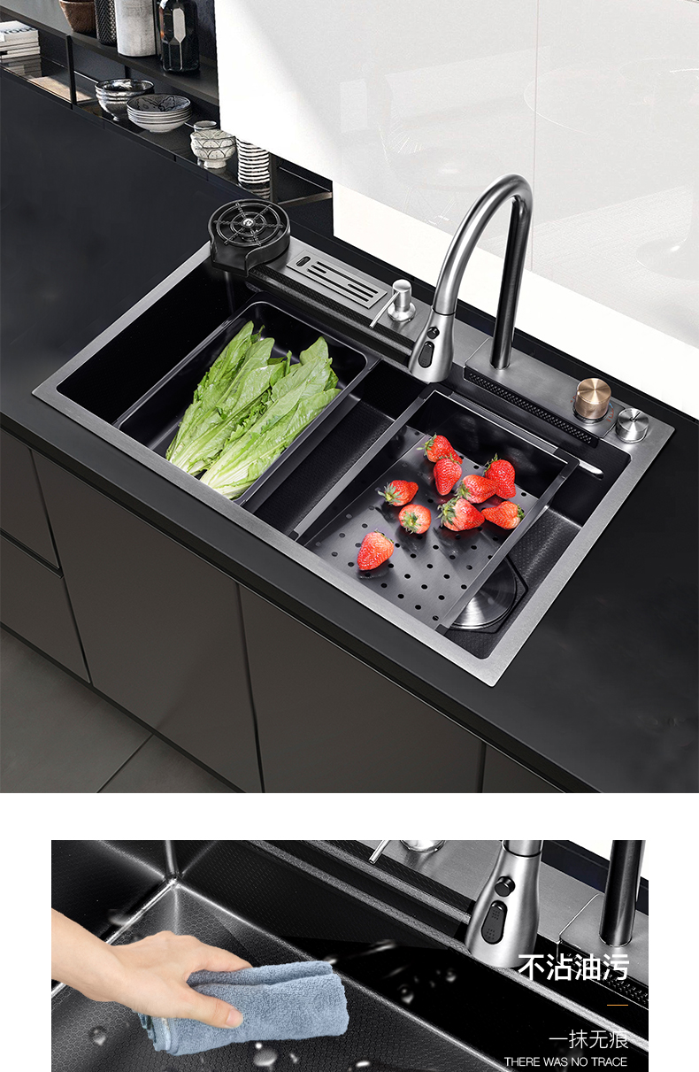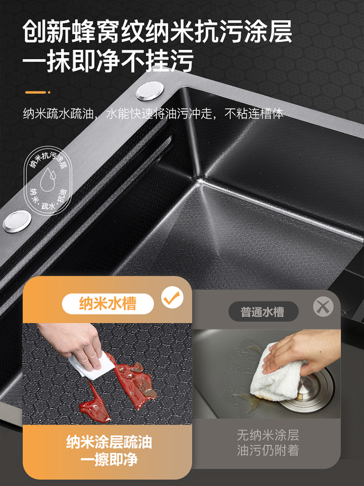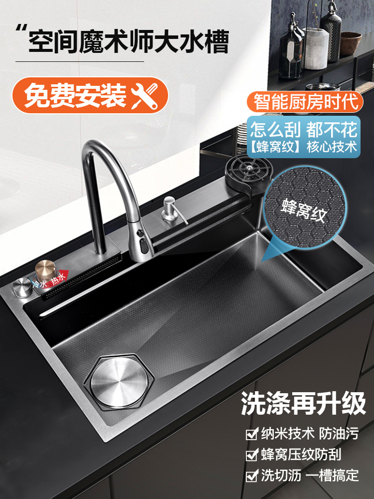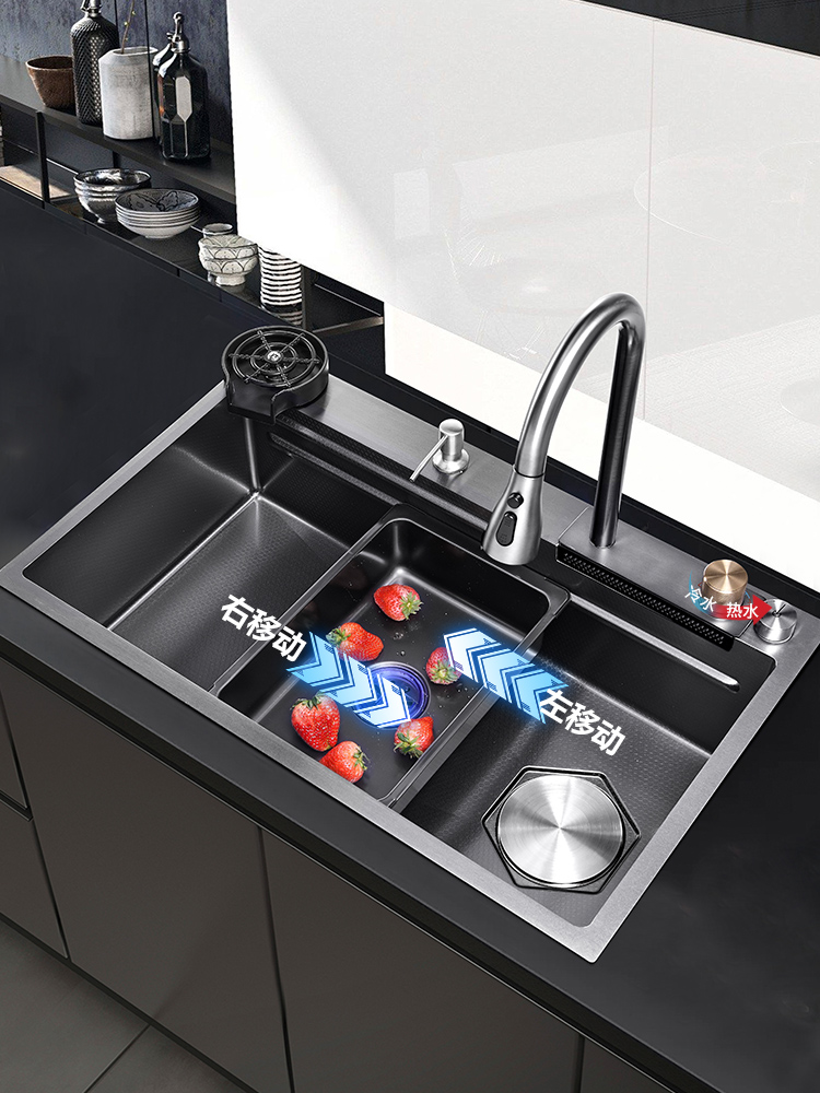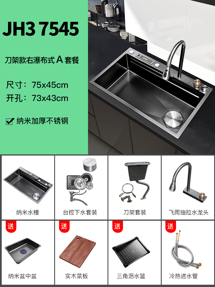 Chậu rửa bát nhà bếp có khe cắm để dao đa năng dập nổi rãnh lớn Inox 304 nano đen đèn Led mẫu mới JH bán chạy nhất 2023 gia dụng thông minh cao cấp