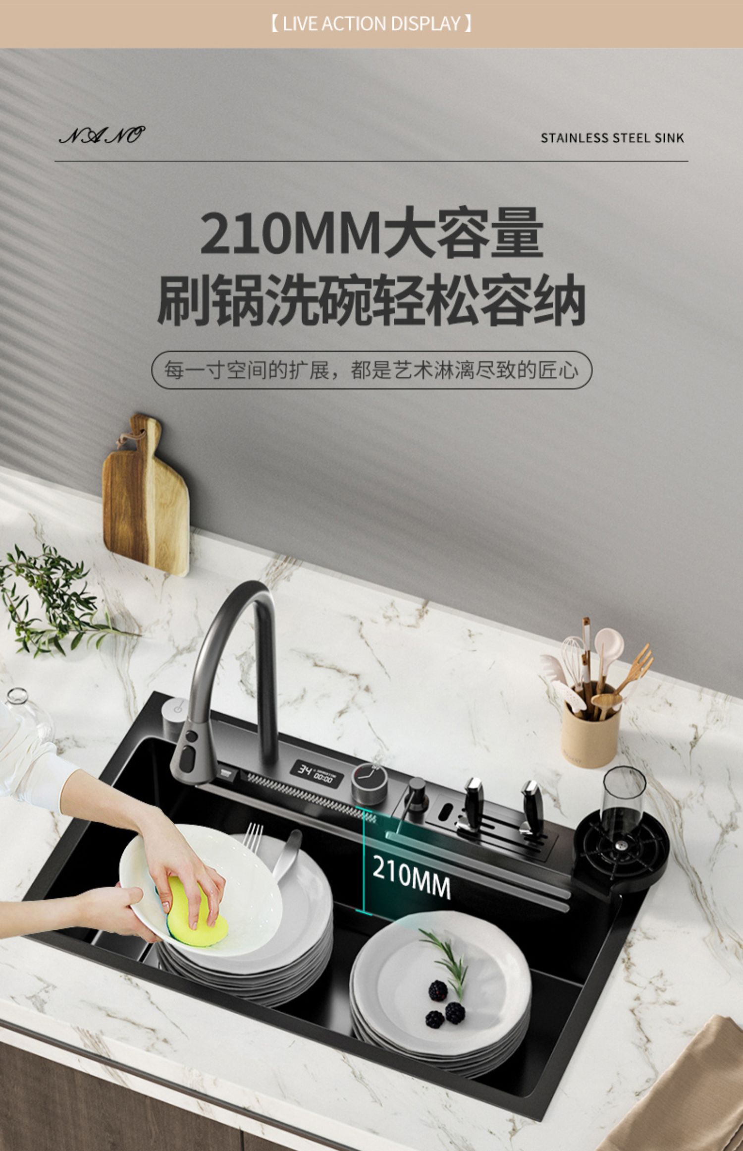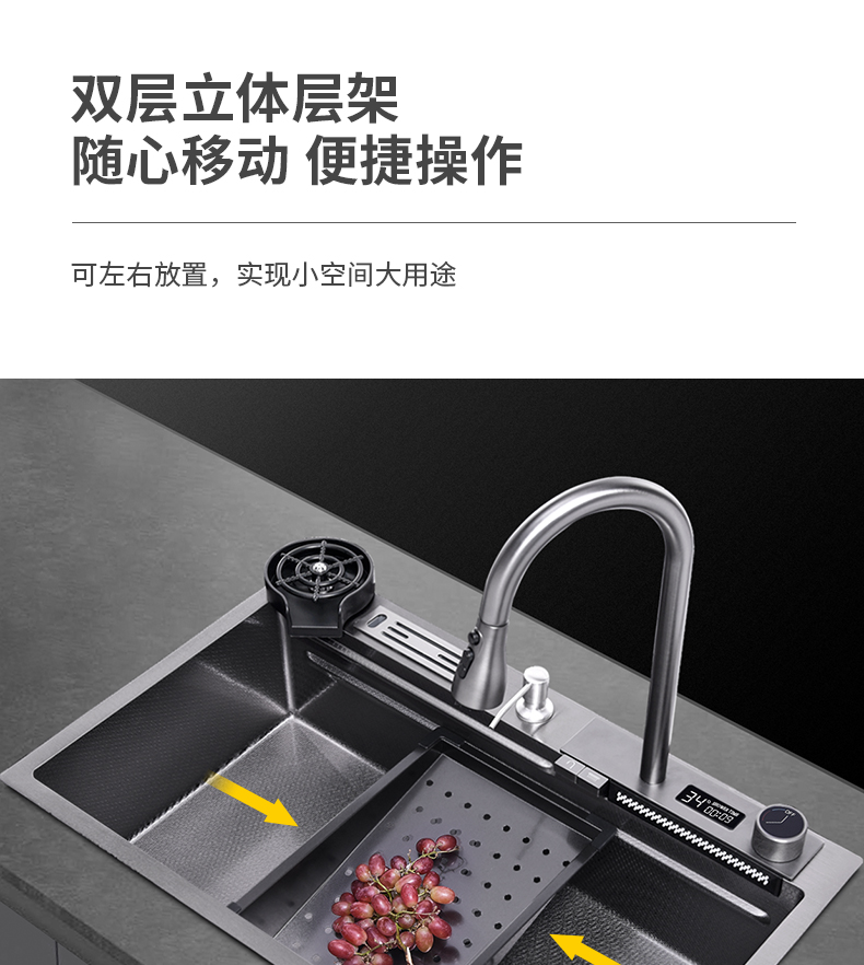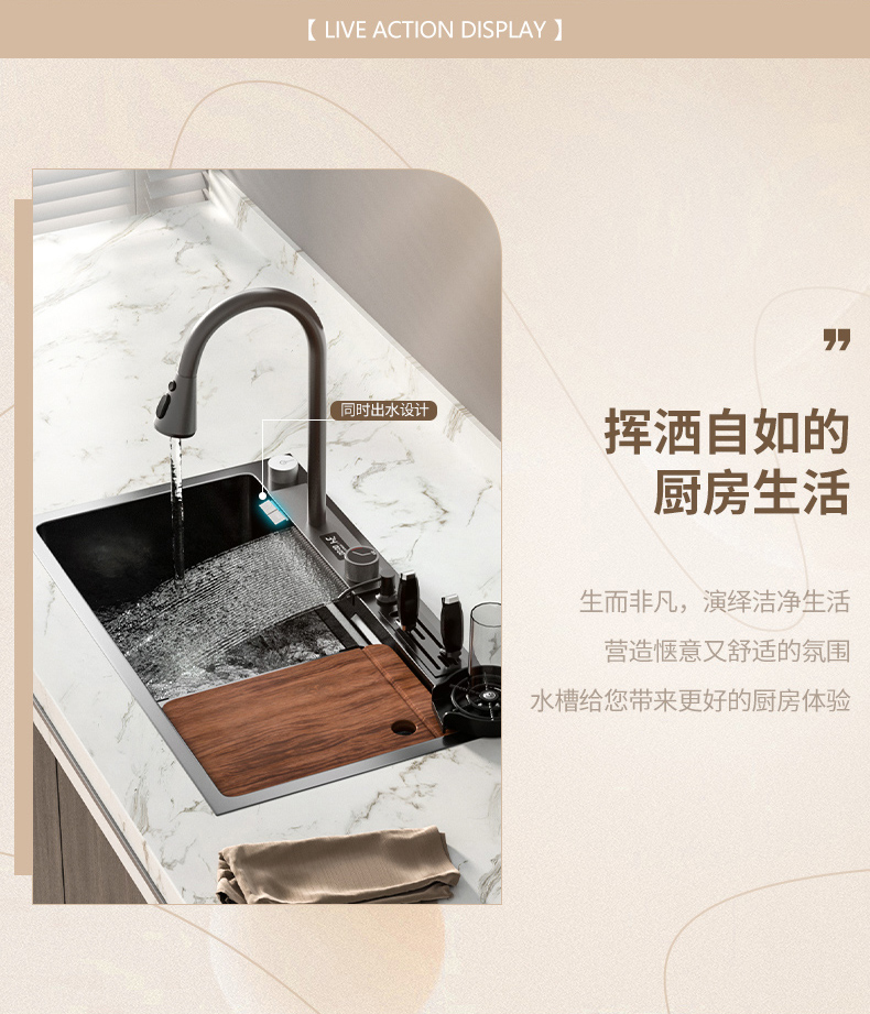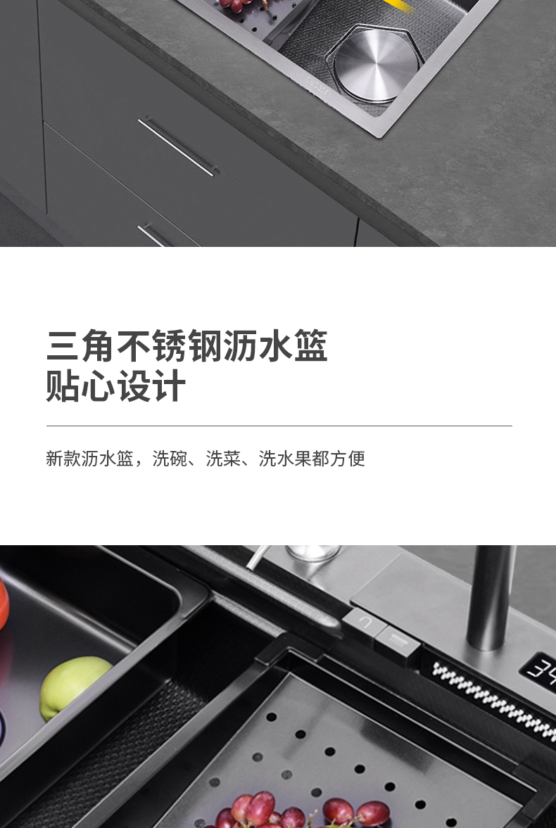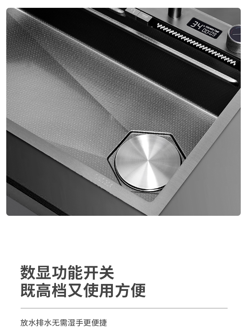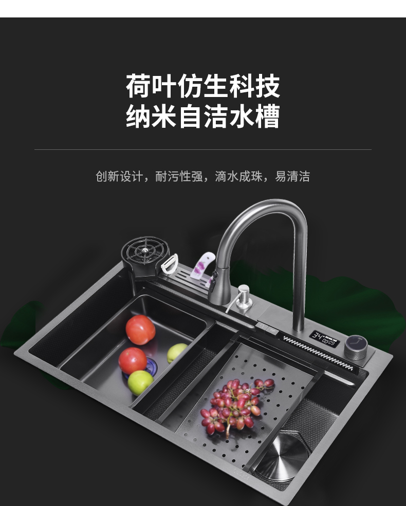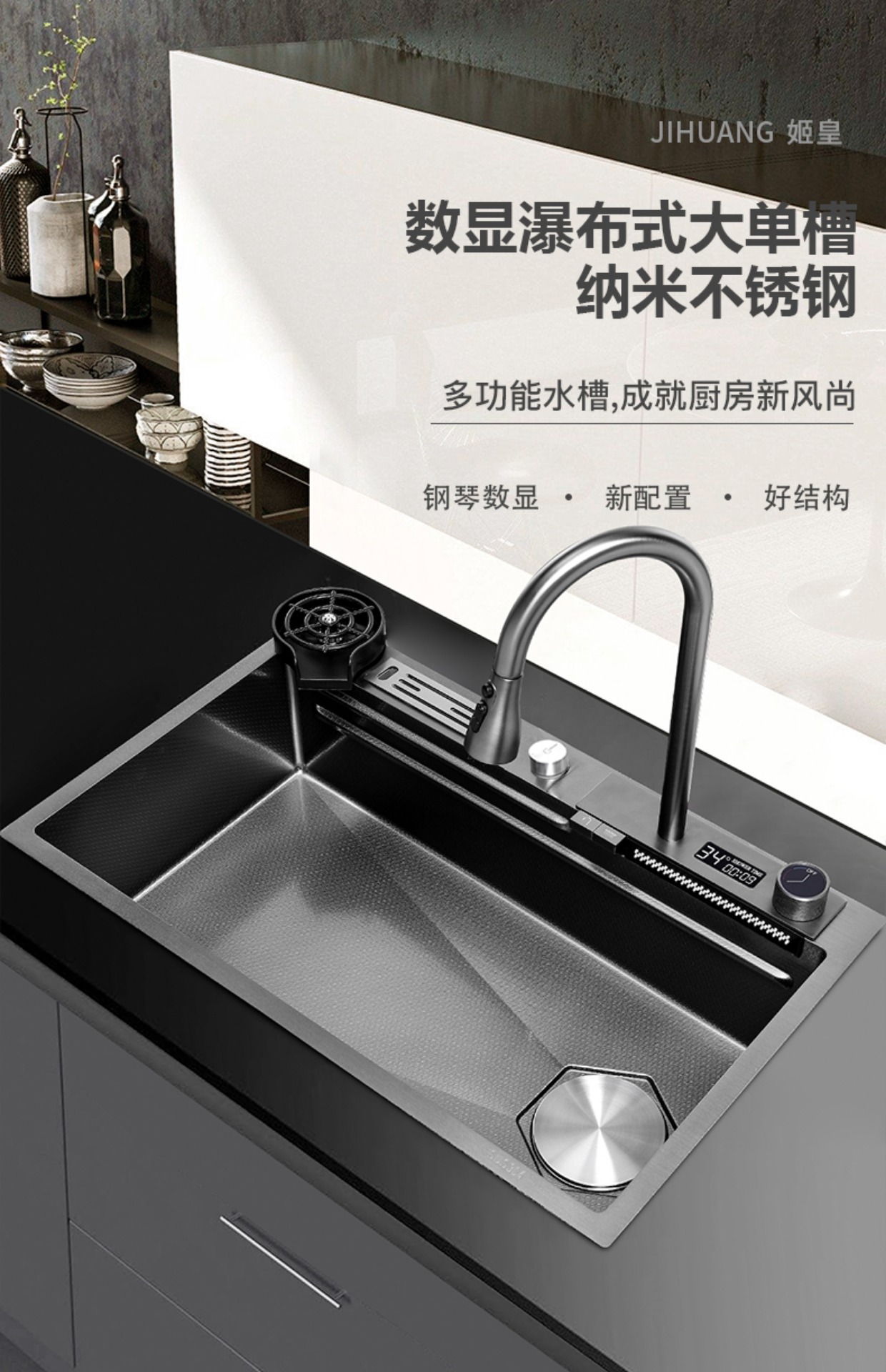 Chậu rửa bát nhà bếp có khe cắm để dao đa năng dập nổi rãnh lớn Inox 304 nano đen đèn Led mẫu mới JH bán chạy nhất 2023 gia dụng thông minh cao cấp