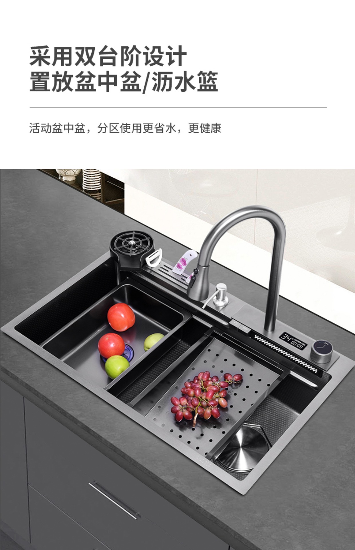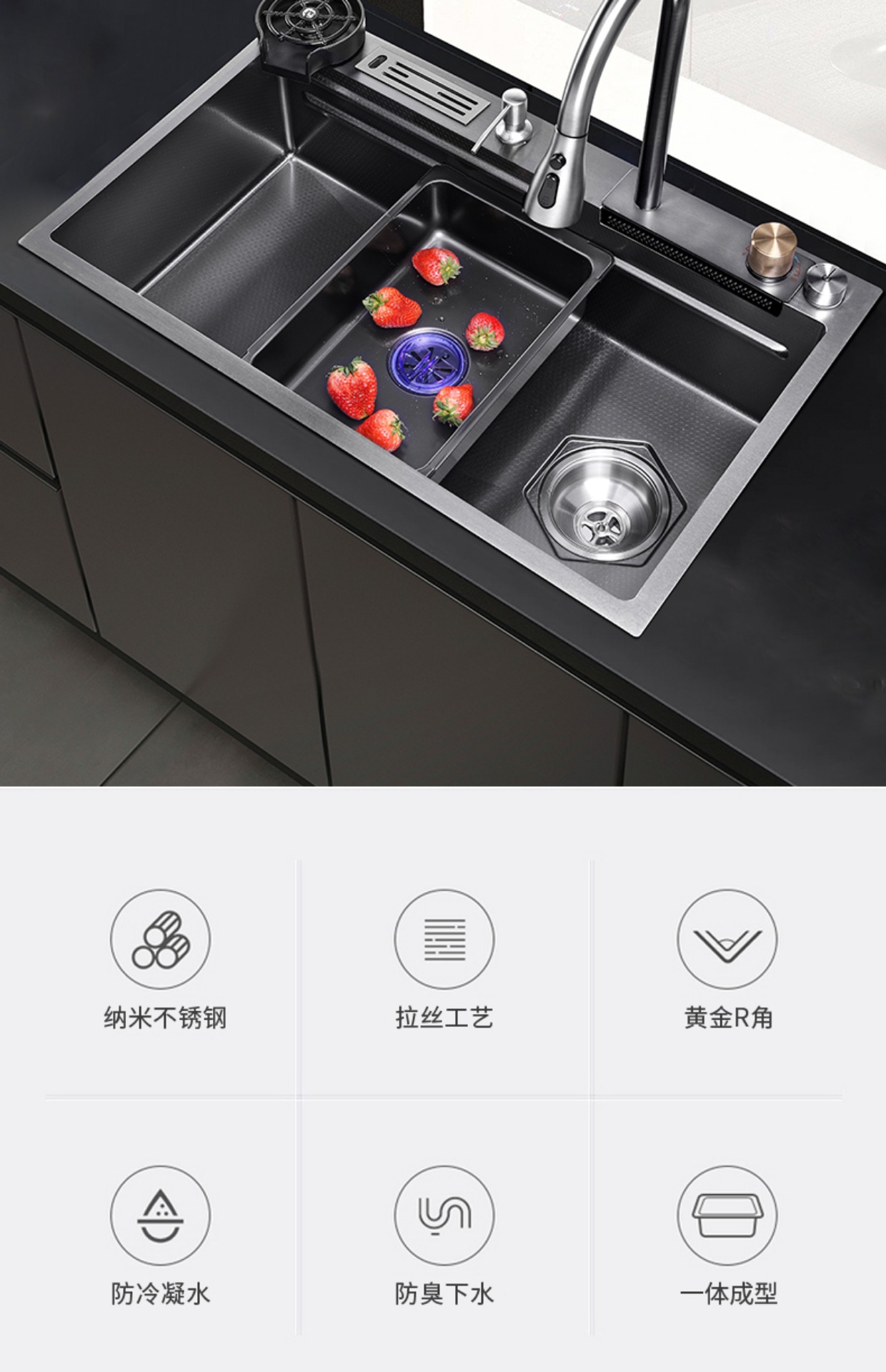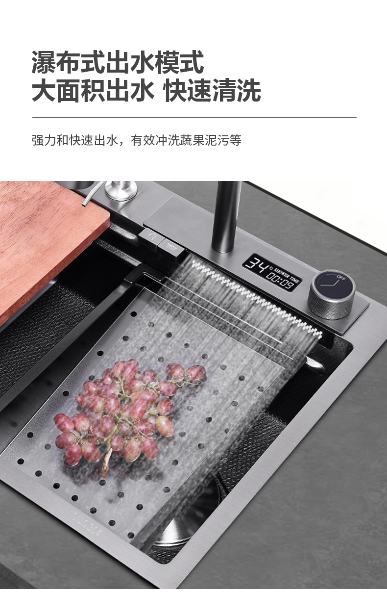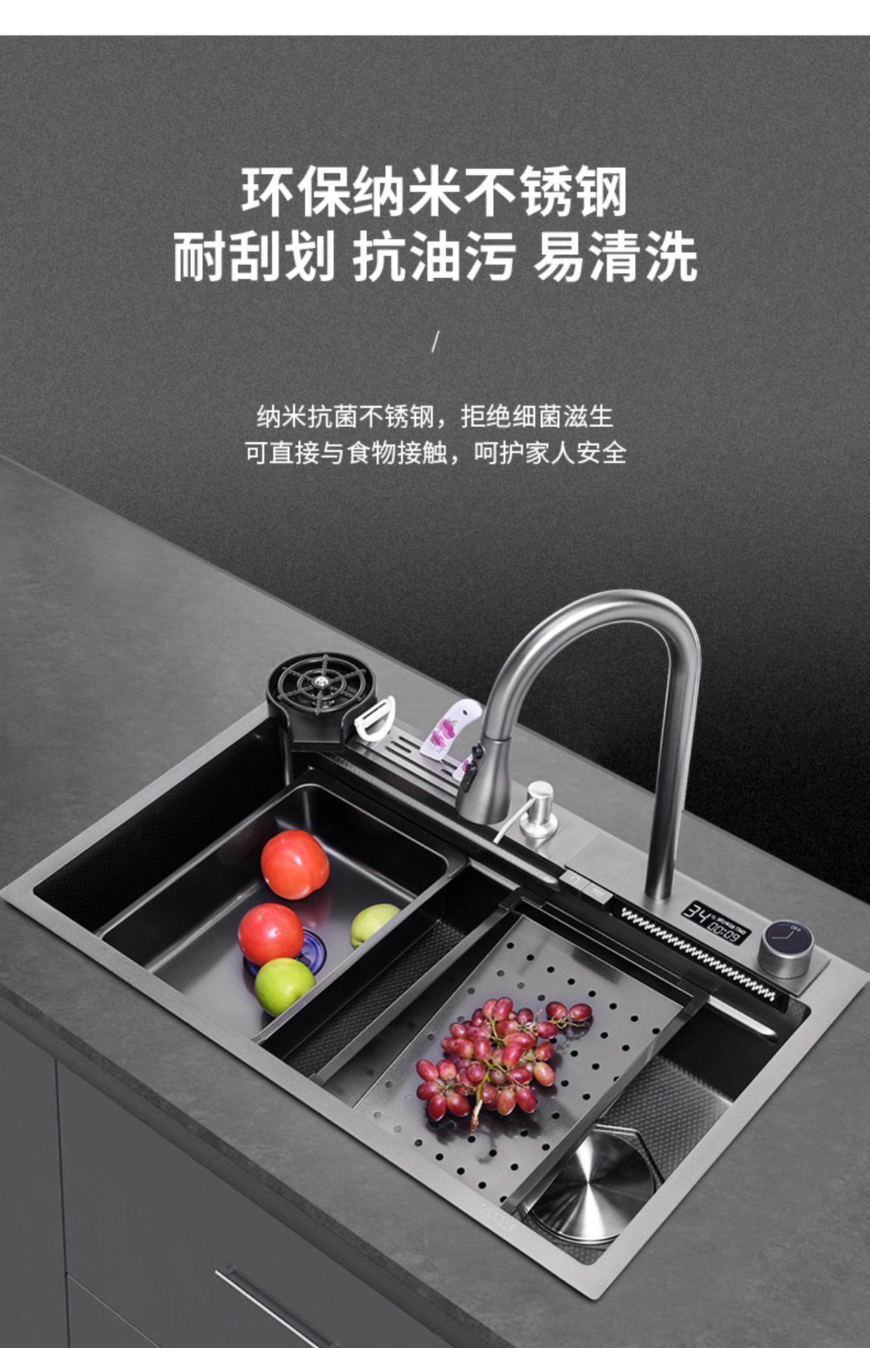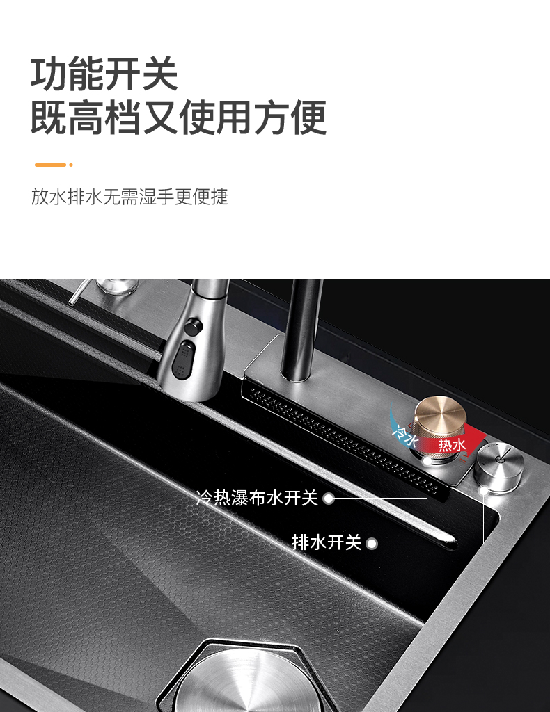Chậu rửa bát nhà bếp có khe cắm để dao đa năng dập nổi rãnh lớn Inox 304 nano đen đèn Led mẫu mới JH bán chạy nhất 2023 gia dụng thông minh cao cấp