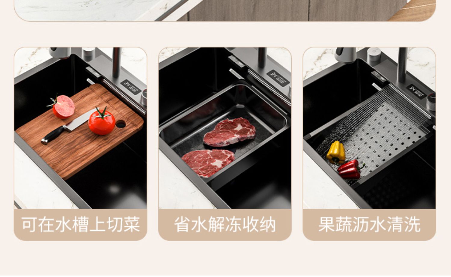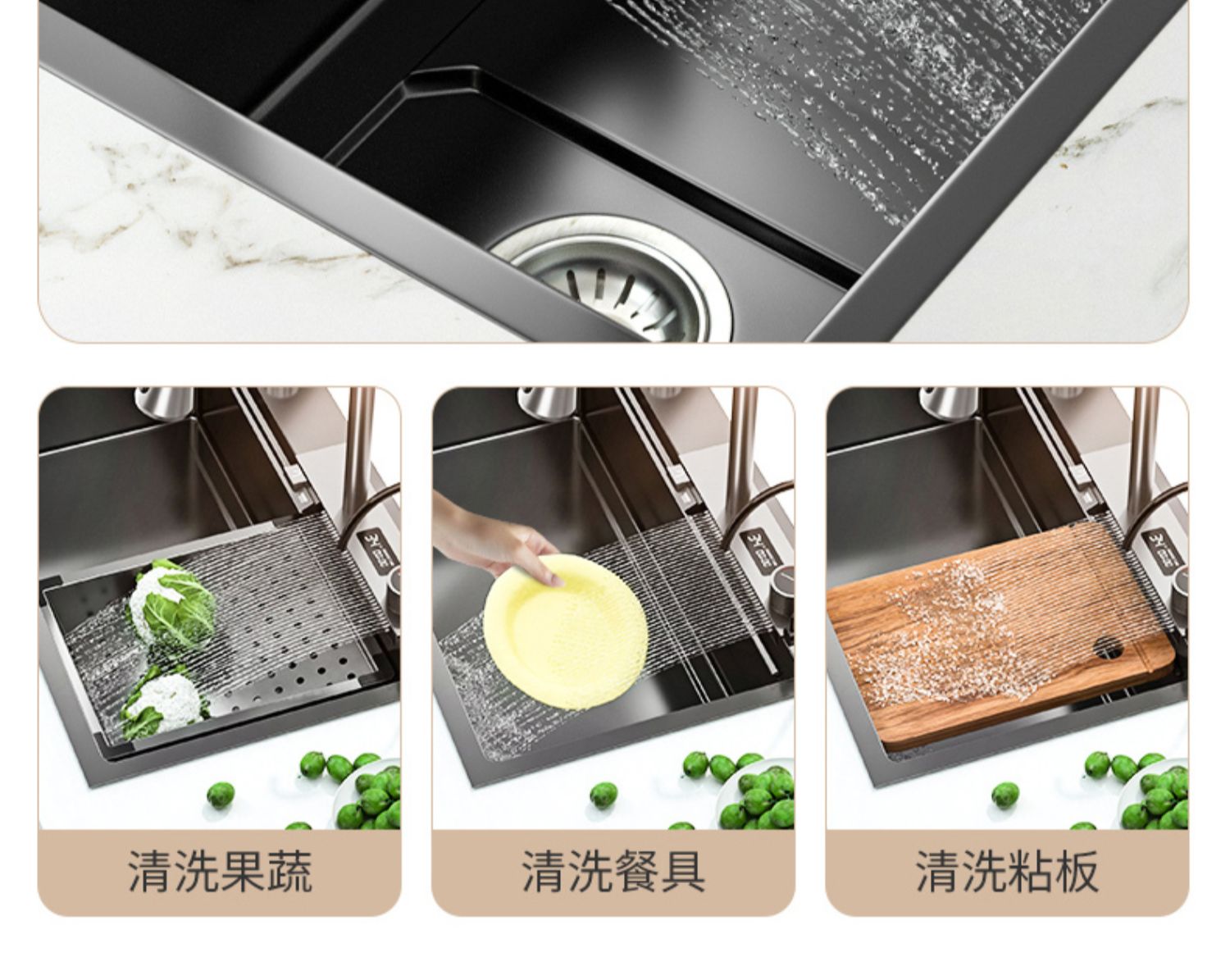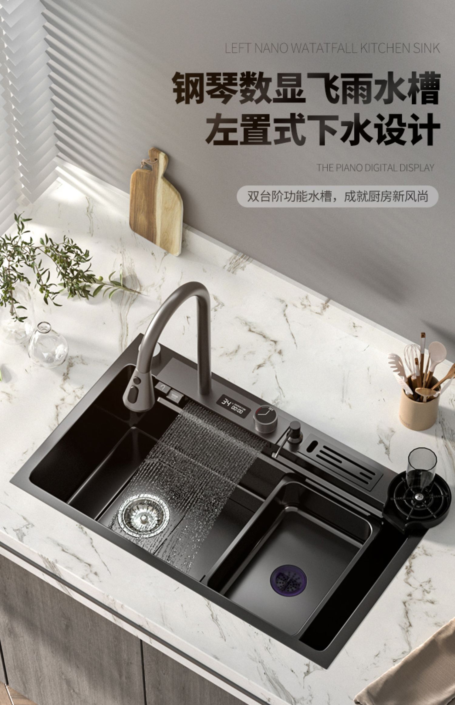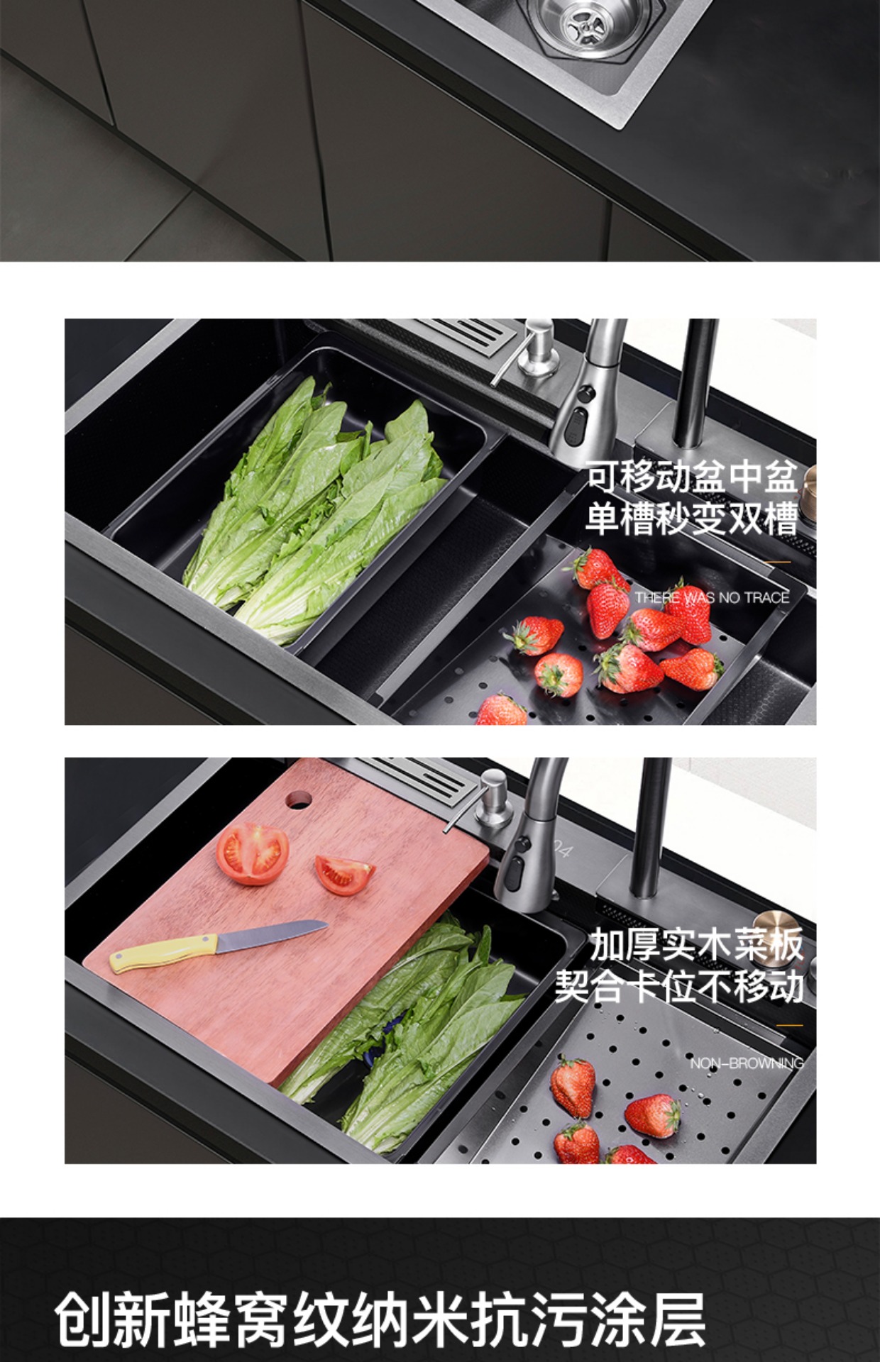 Chậu rửa bát nhà bếp có khe cắm để dao đa năng dập nổi rãnh lớn Inox 304 nano đen đèn Led mẫu mới JH bán chạy nhất 2023 gia dụng thông minh cao cấp