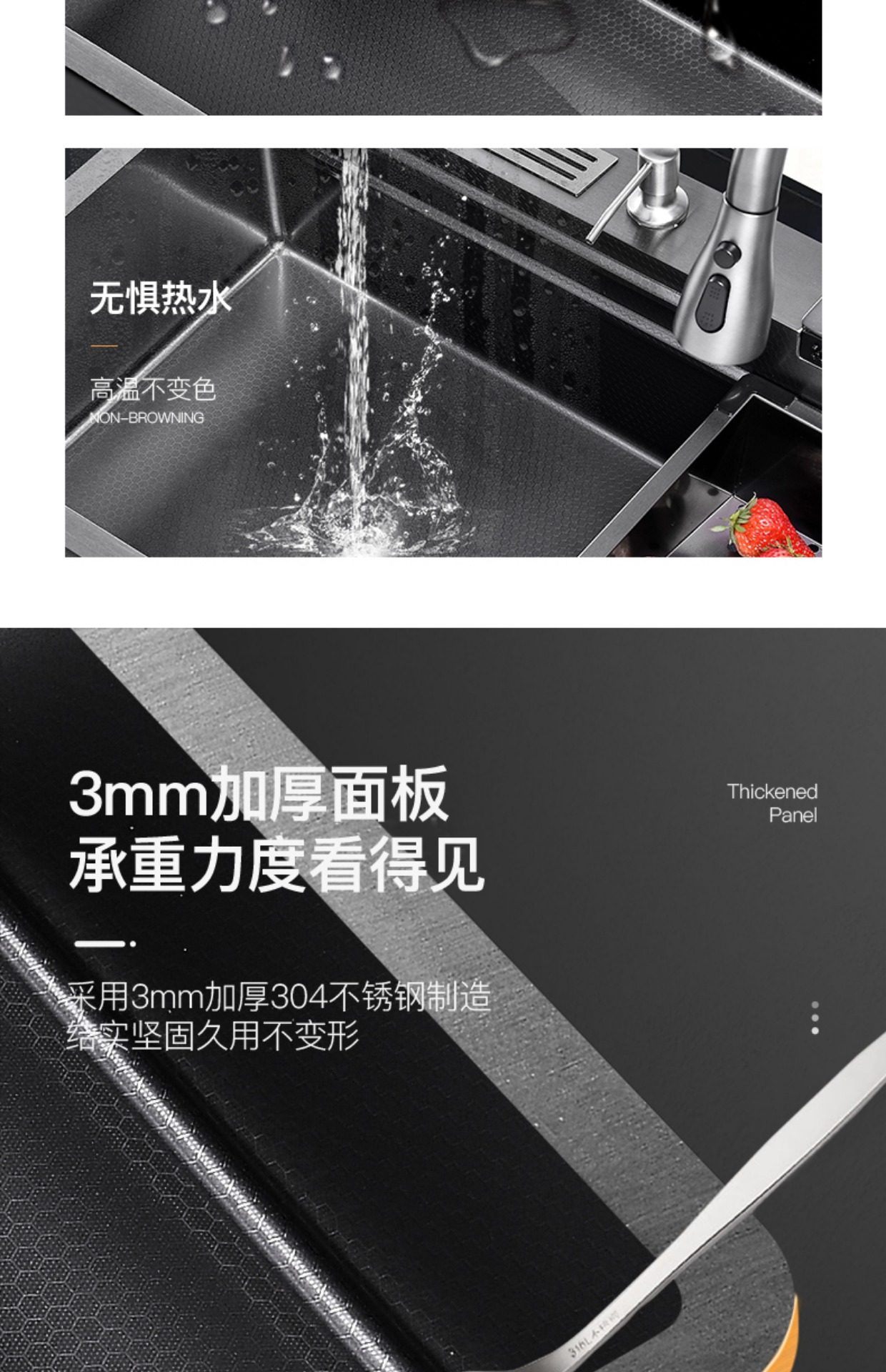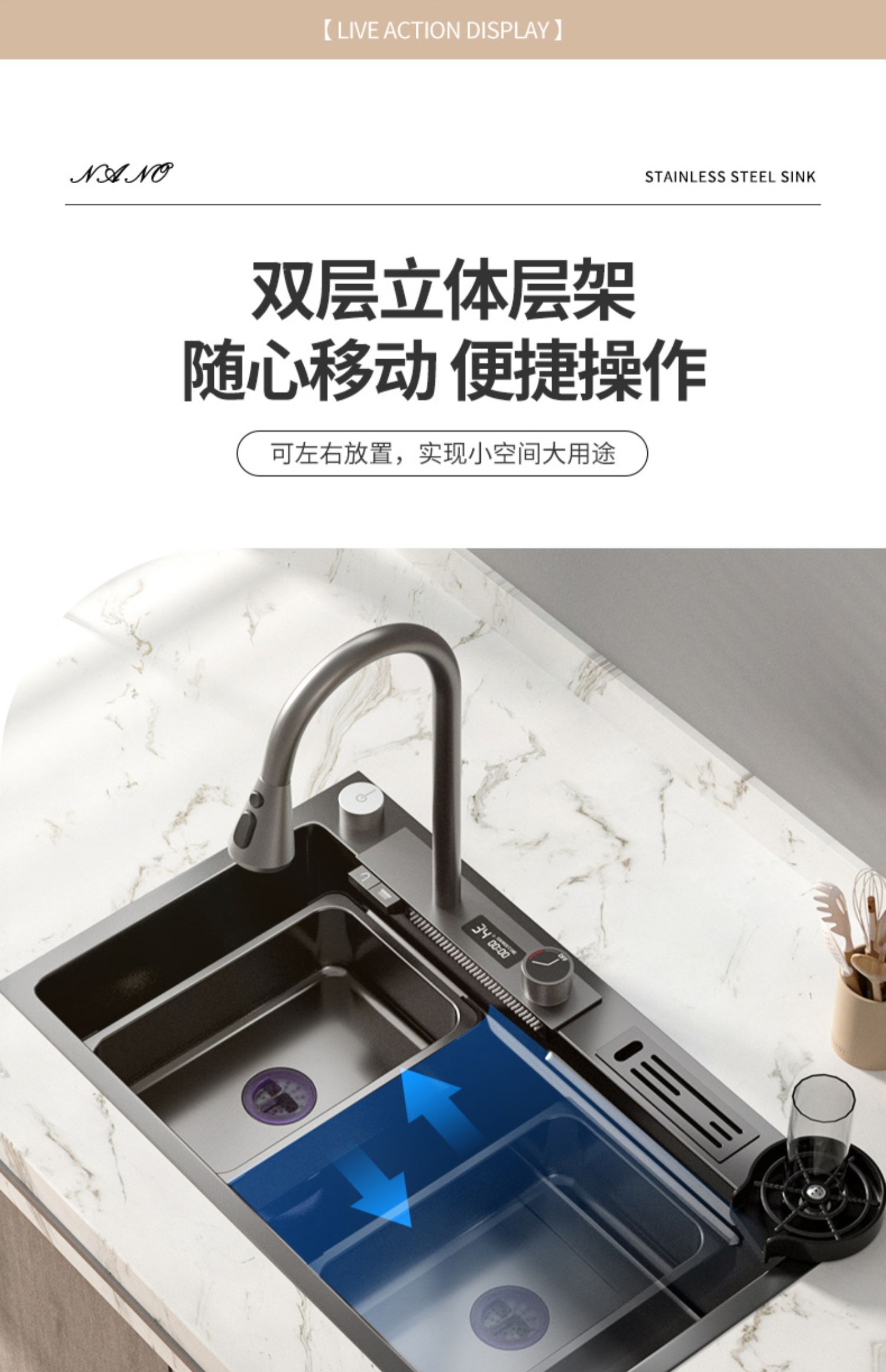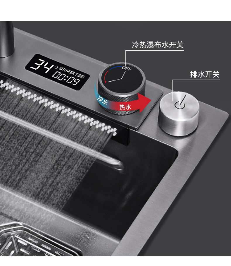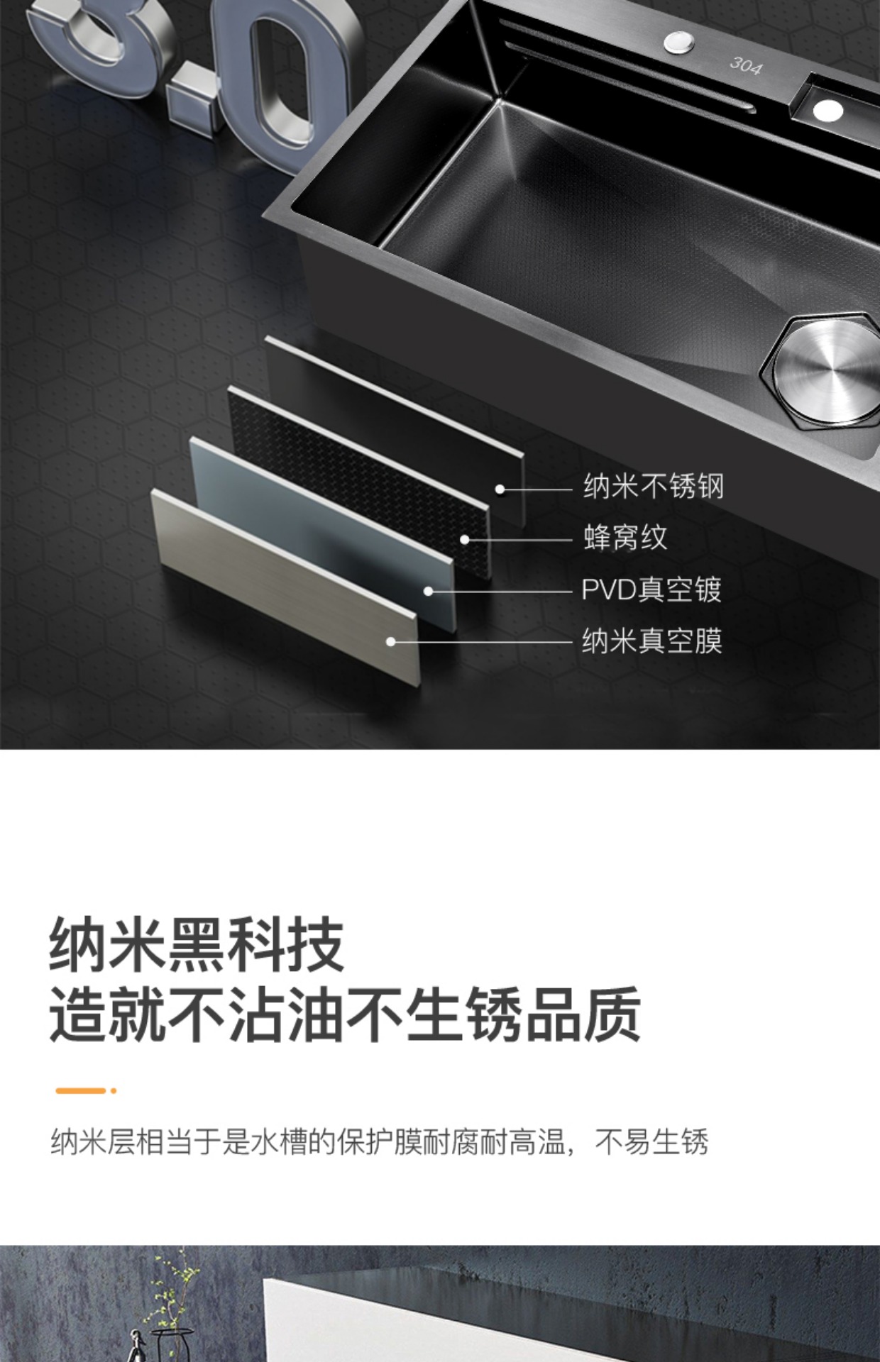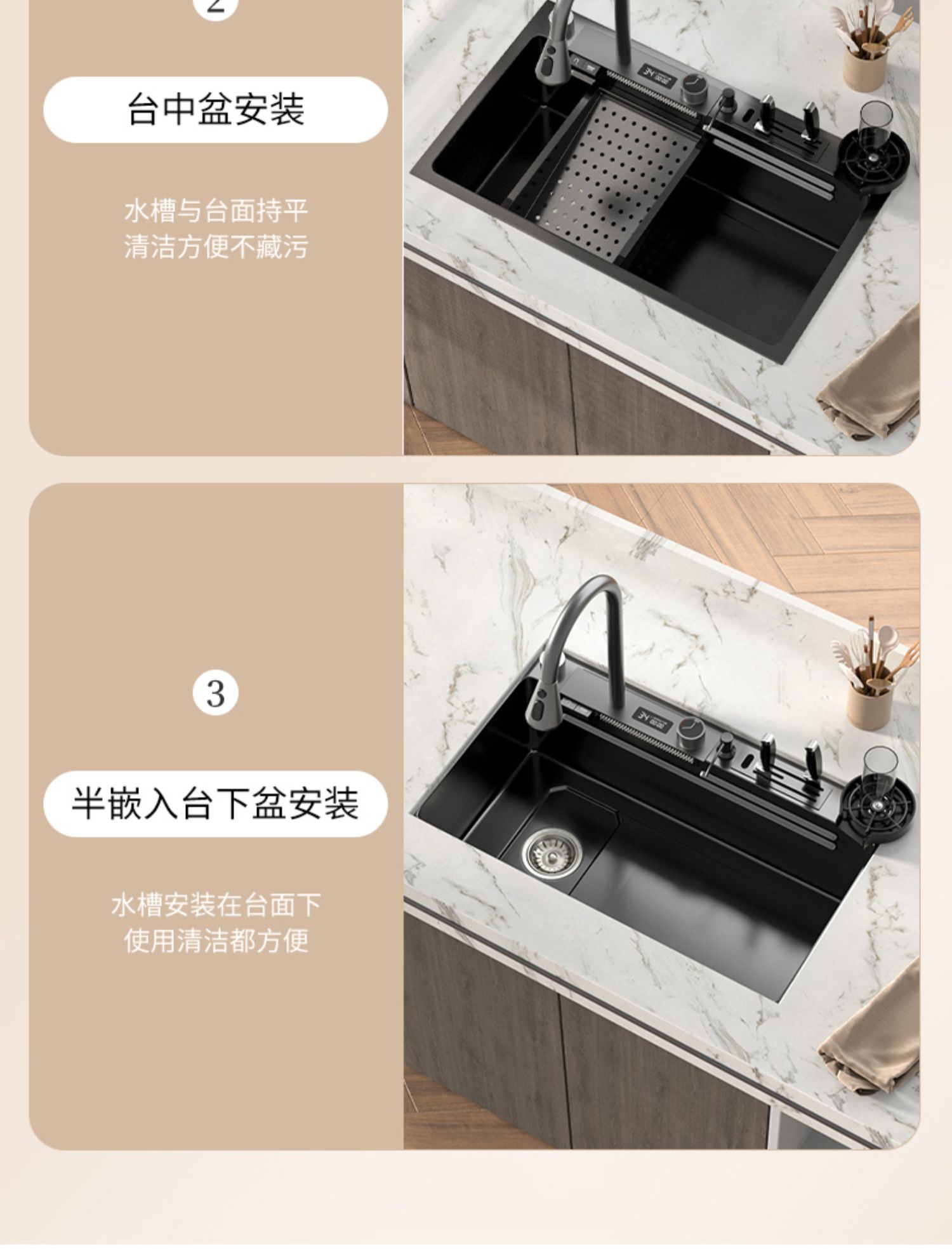 Chậu rửa bát nhà bếp có khe cắm để dao đa năng dập nổi rãnh lớn Inox 304 nano đen đèn Led mẫu mới JH bán chạy nhất 2023 gia dụng thông minh cao cấp