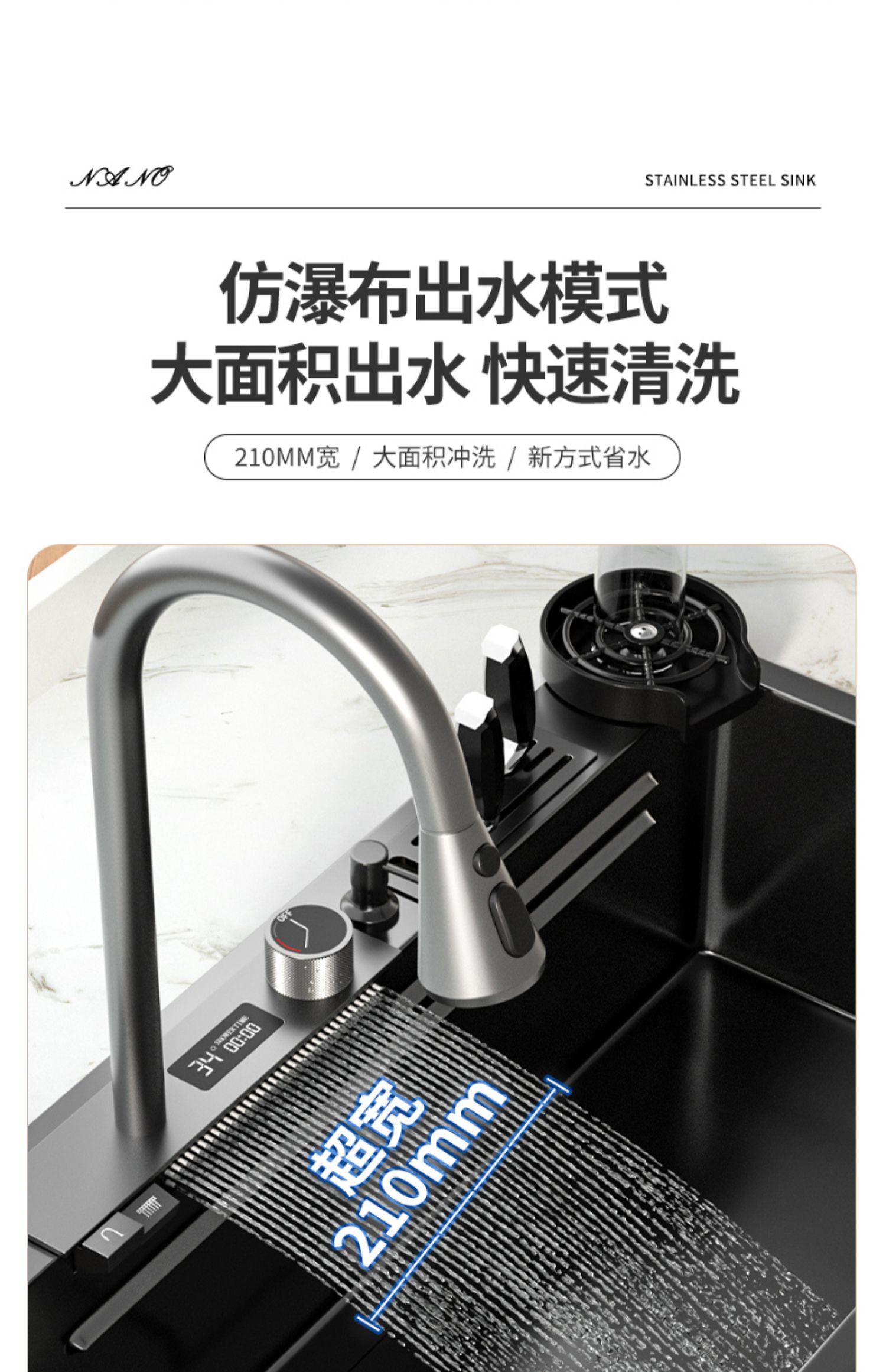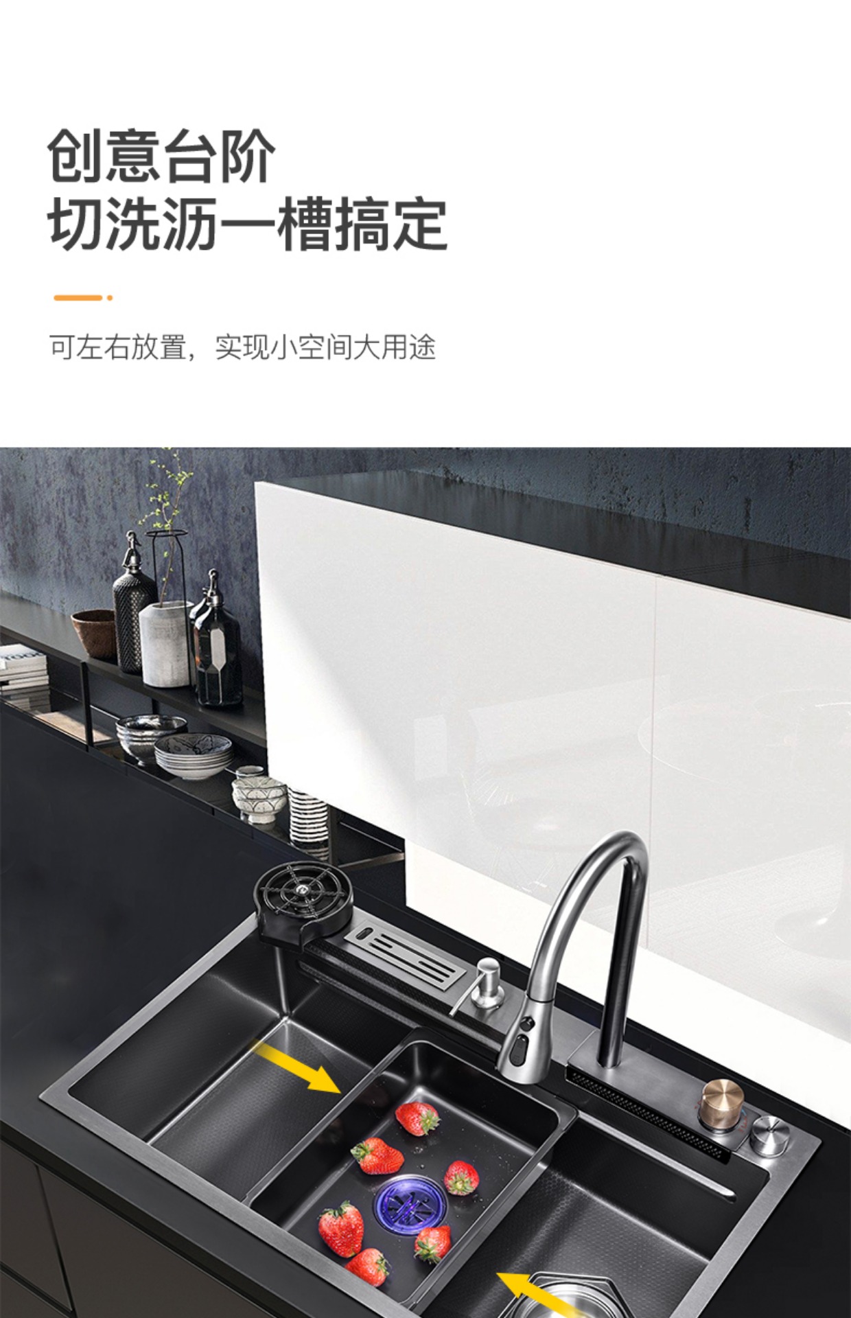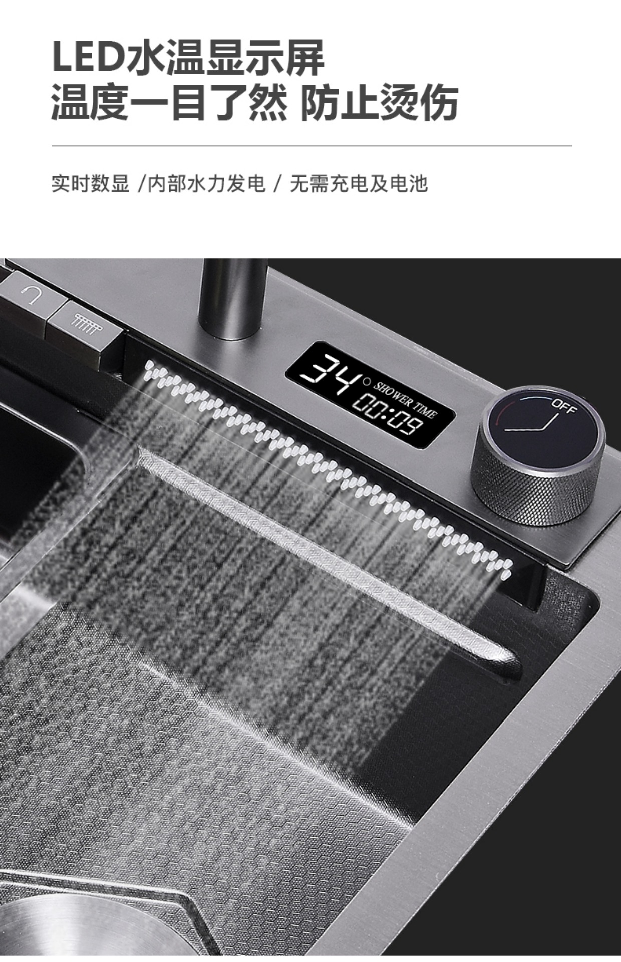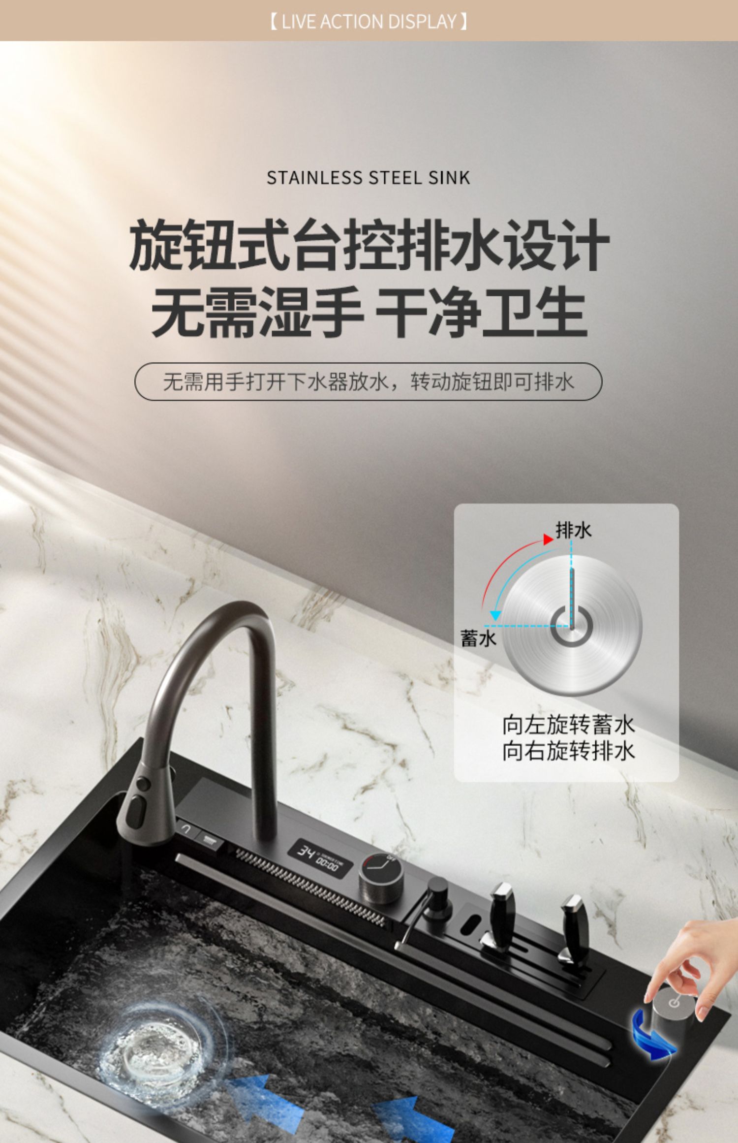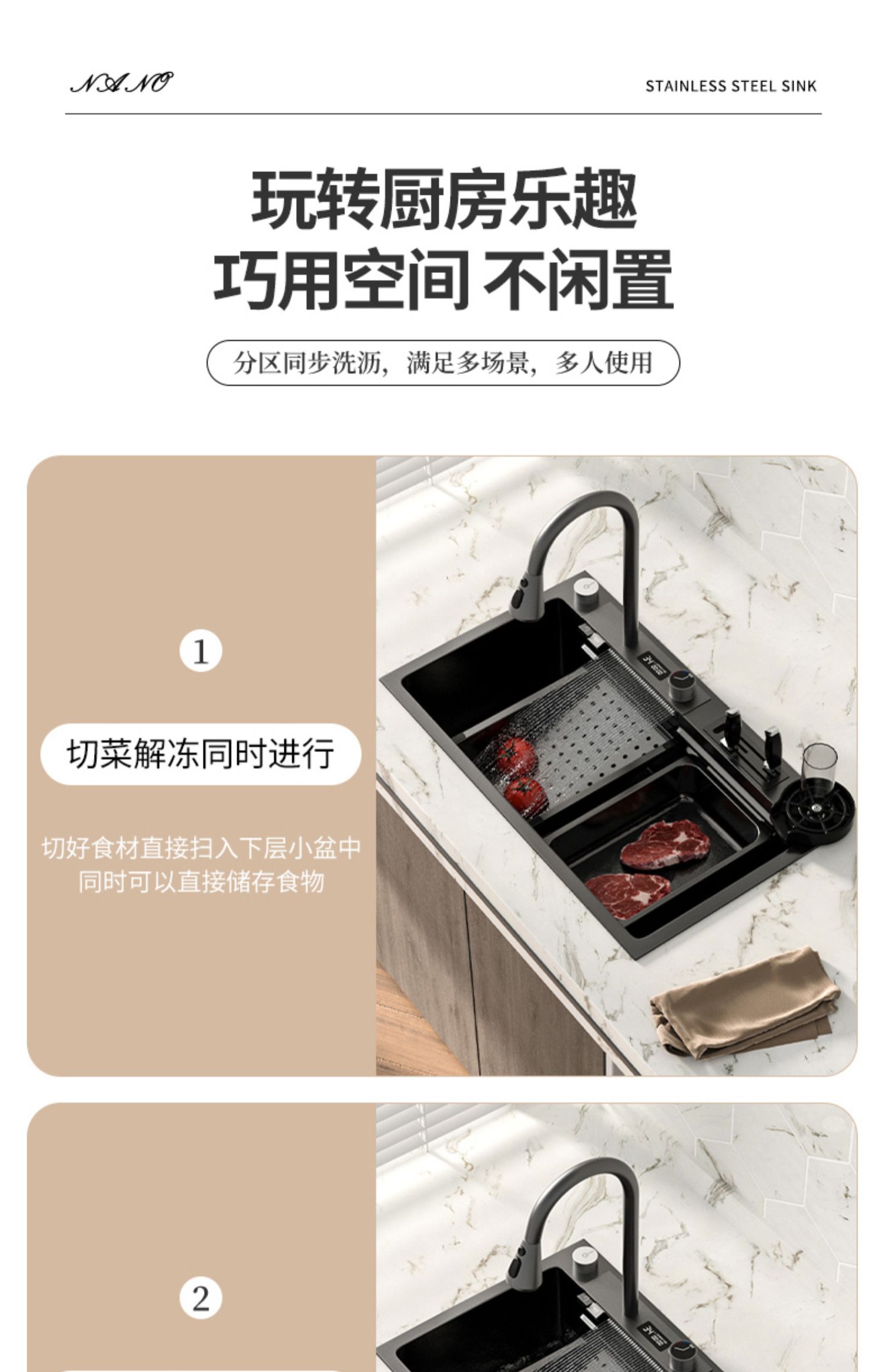 Chậu rửa bát nhà bếp có khe cắm để dao đa năng dập nổi rãnh lớn Inox 304 nano đen đèn Led mẫu mới JH bán chạy nhất 2023 gia dụng thông minh cao cấp