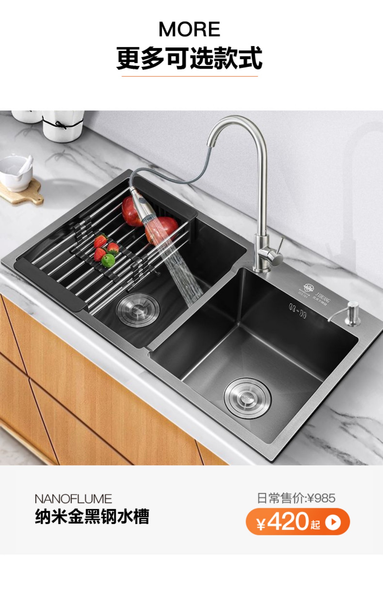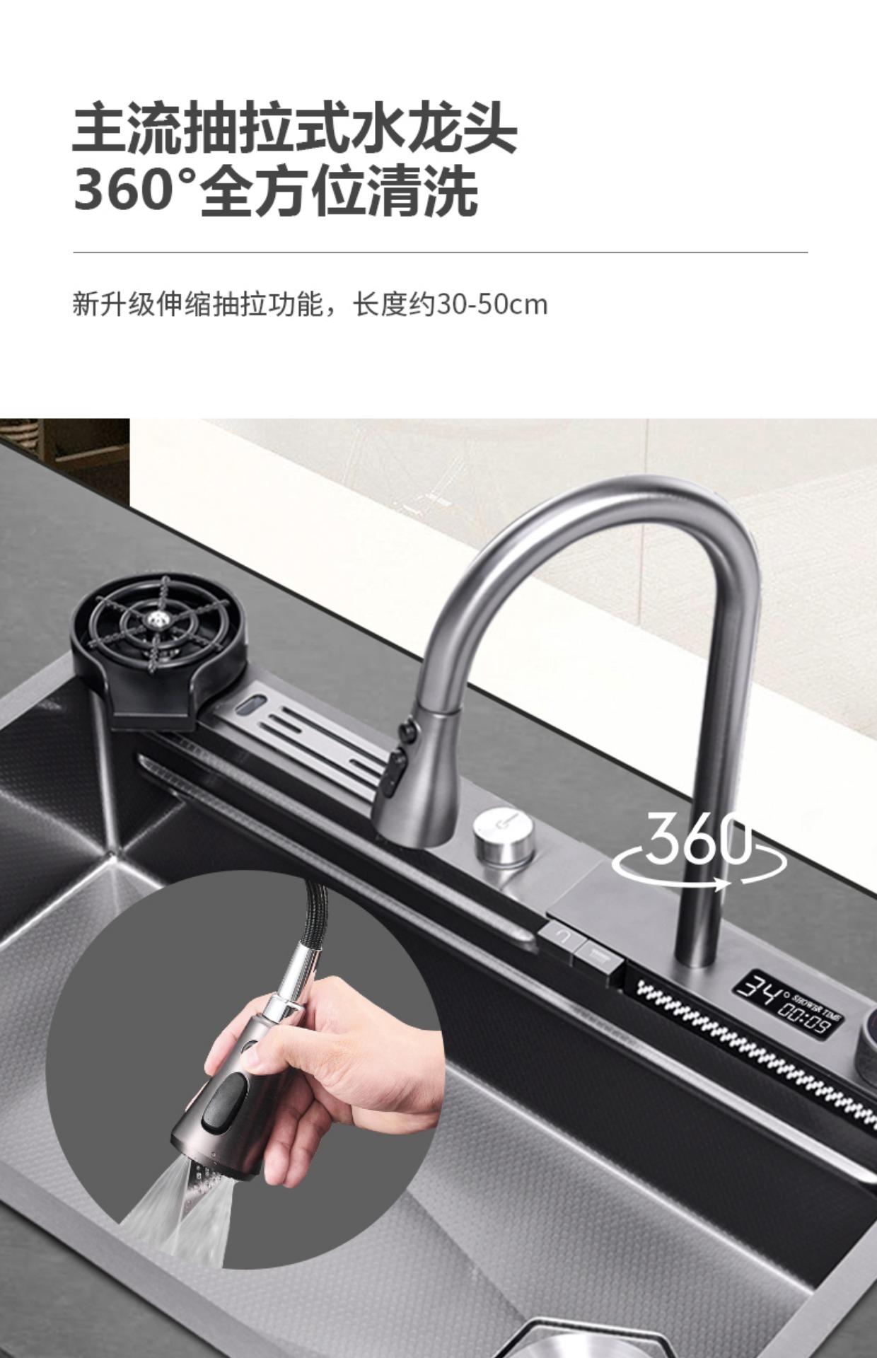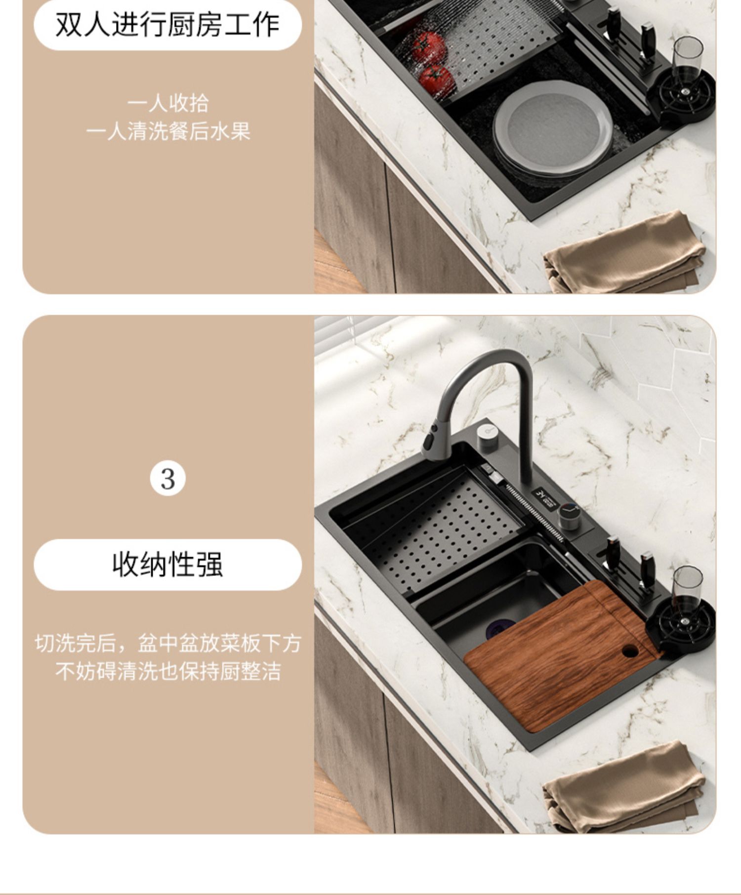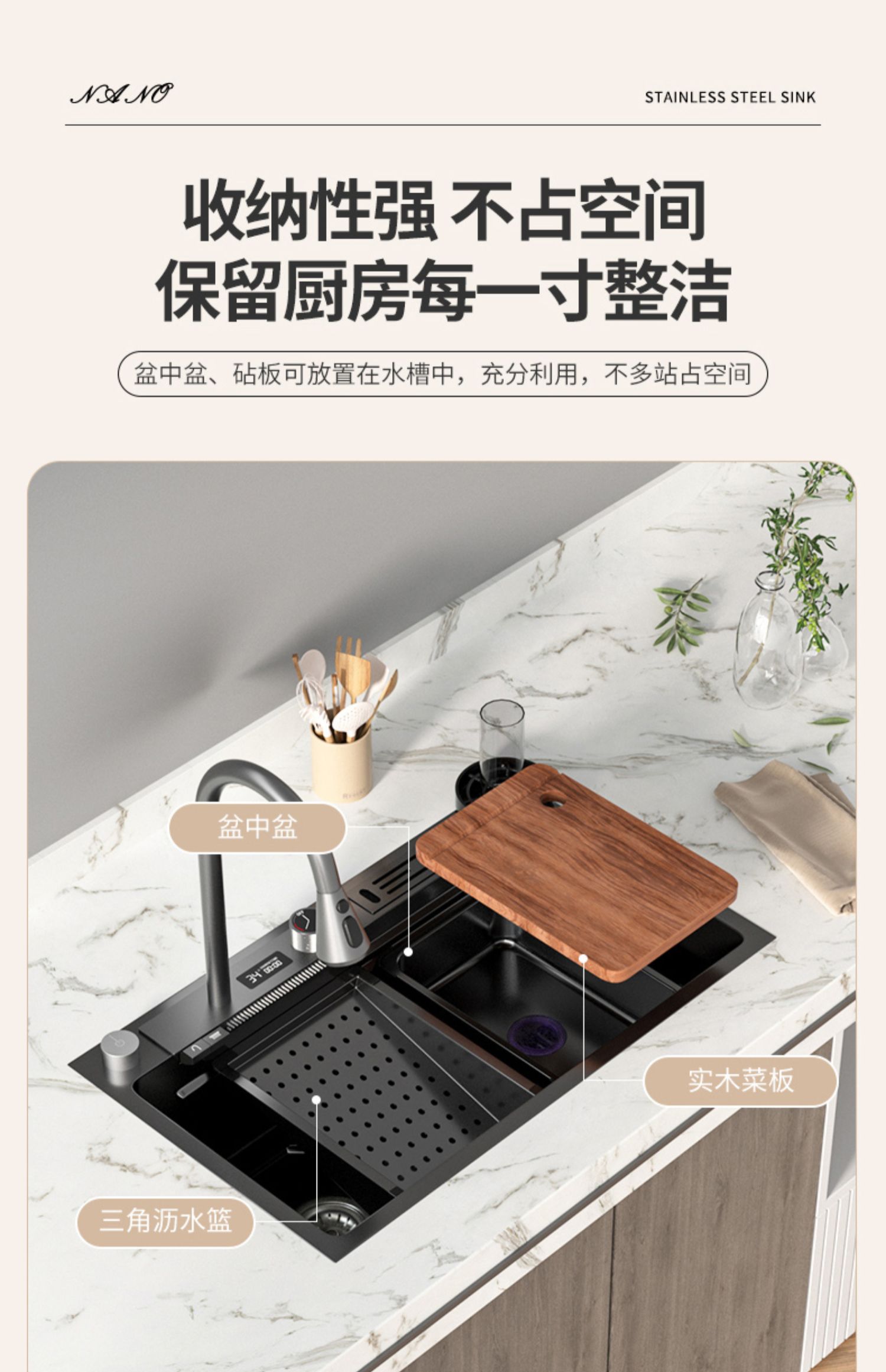 Chậu rửa bát nhà bếp có khe cắm để dao đa năng dập nổi rãnh lớn Inox 304 nano đen đèn Led mẫu mới JH bán chạy nhất 2023 gia dụng thông minh cao cấp