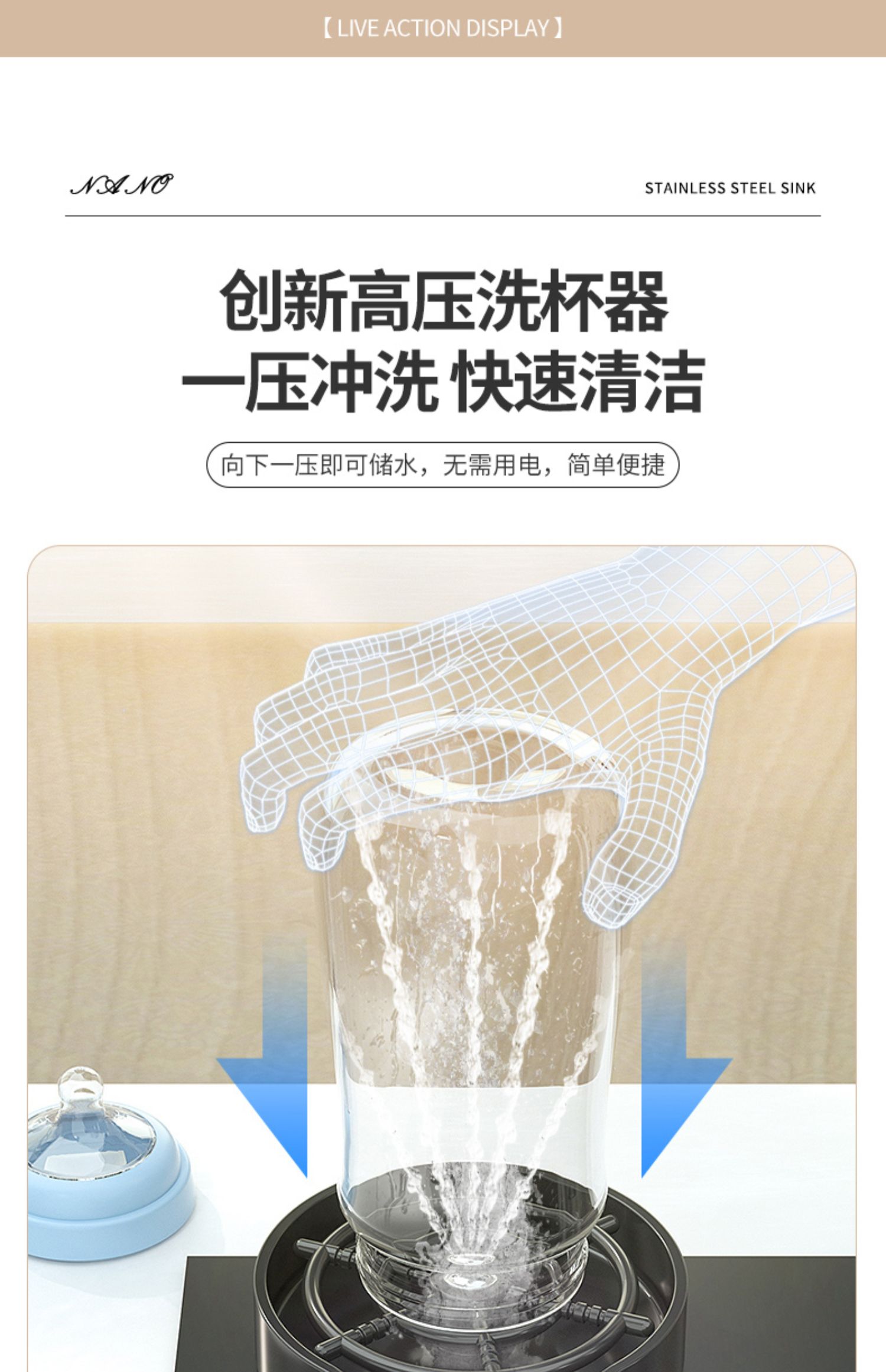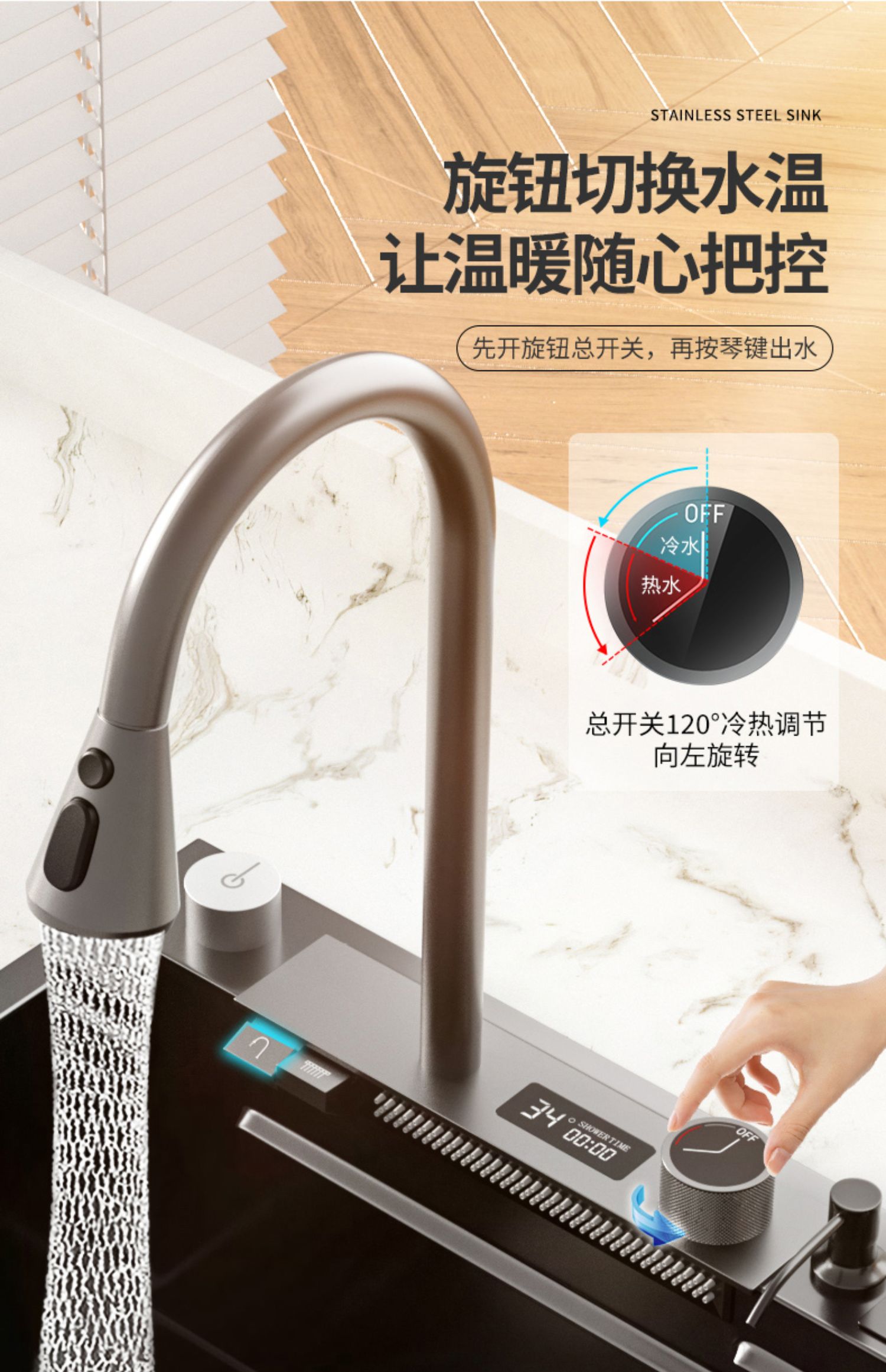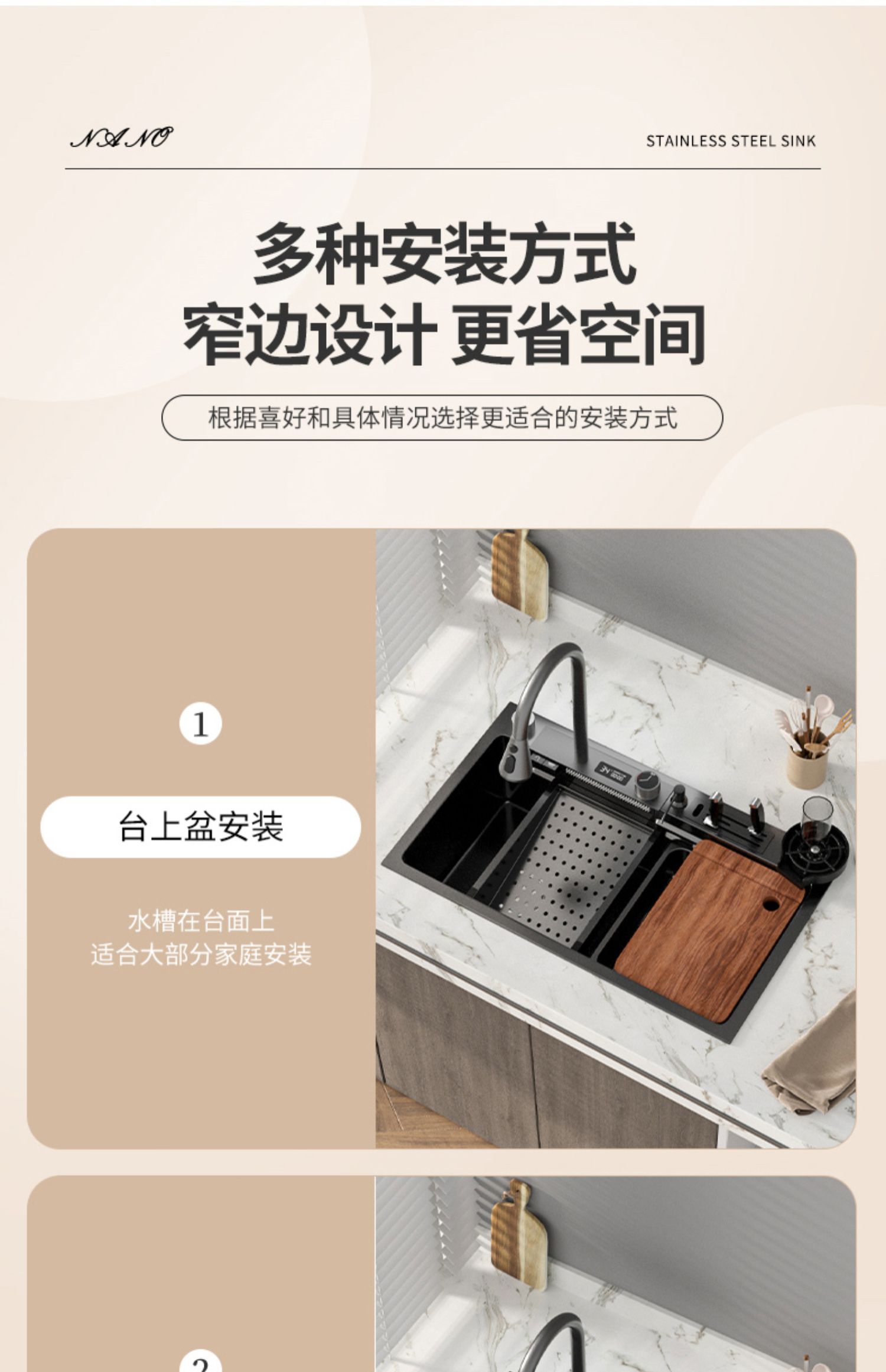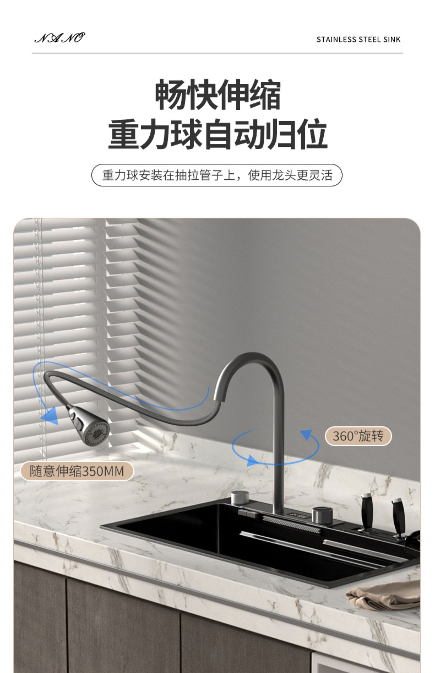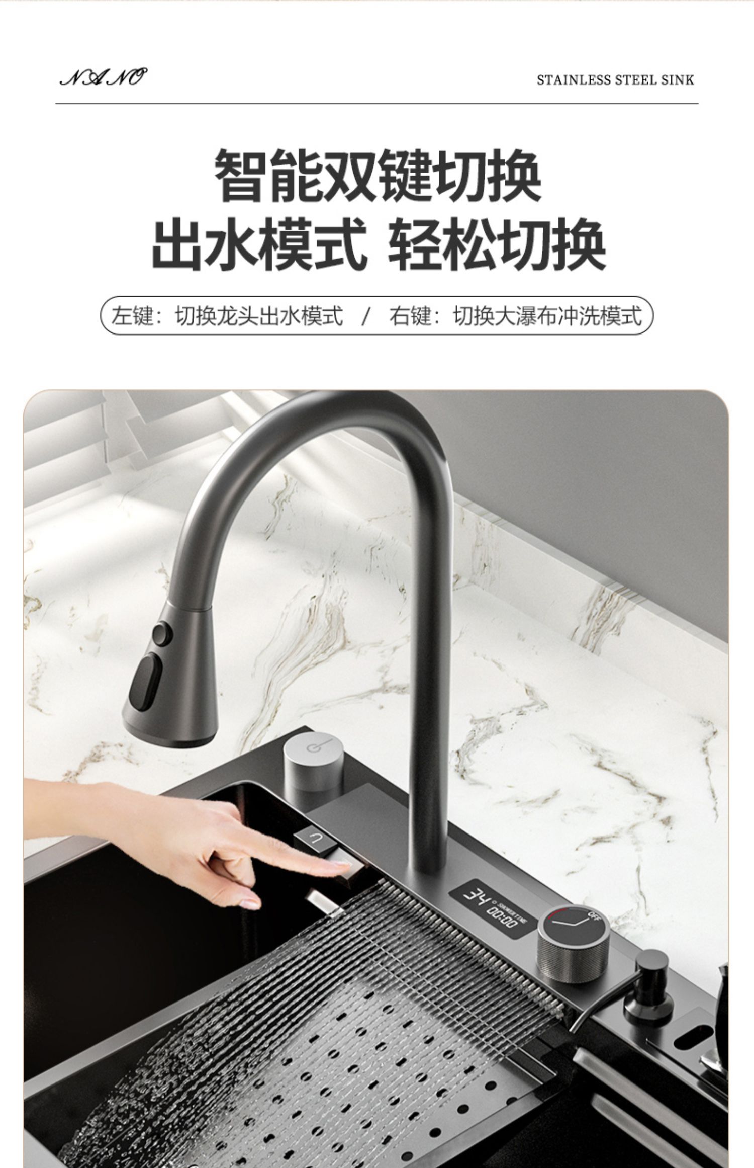 Chậu rửa bát nhà bếp có khe cắm để dao đa năng dập nổi rãnh lớn Inox 304 nano đen đèn Led mẫu mới JH bán chạy nhất 2023 gia dụng thông minh cao cấp