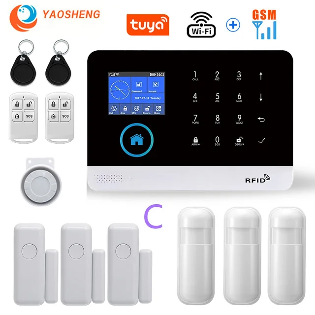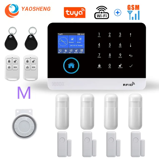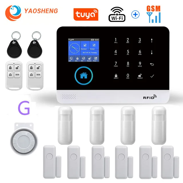 Hệ thống báo động nhà thông minh phát hiện chuyển động YAOSHENG PG103 hỗ trợ kết nối Wifi GSM giám sát điều khiển từ xa qua điện thoại với ứng dụng TUYA GOOGLE ALEXA