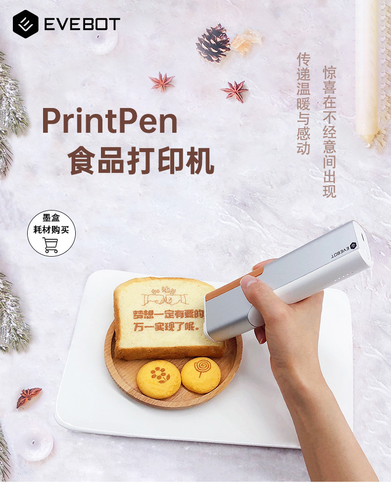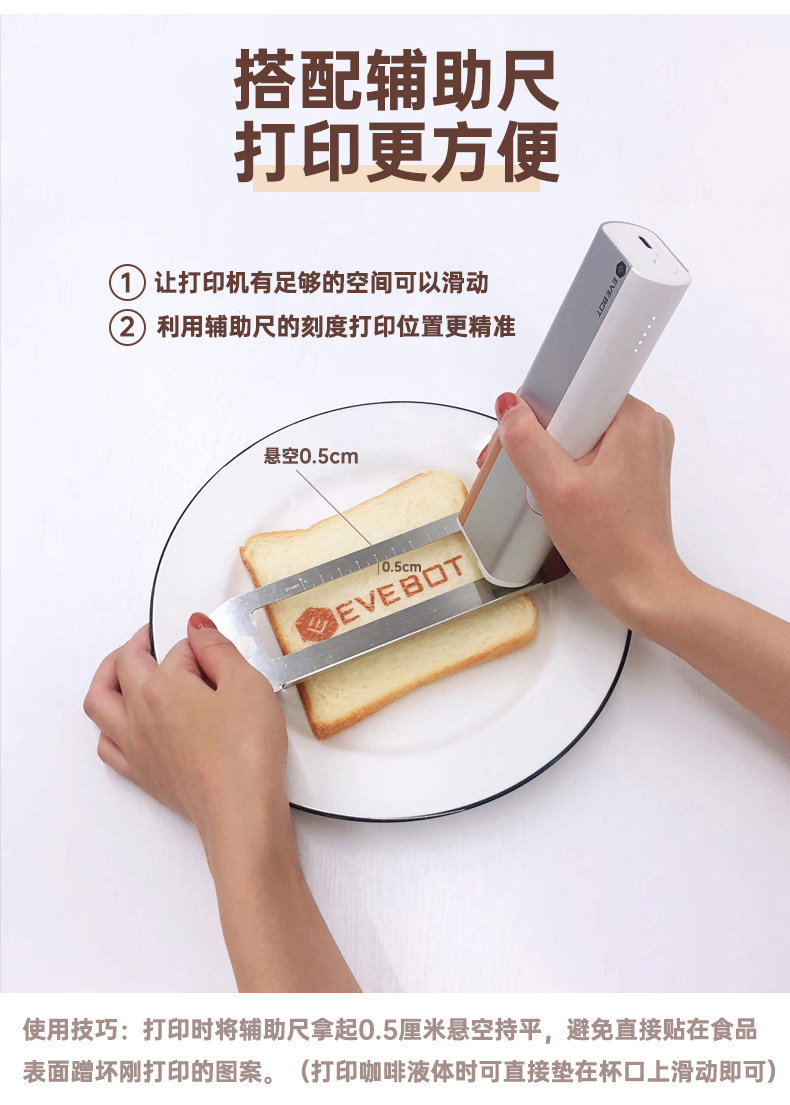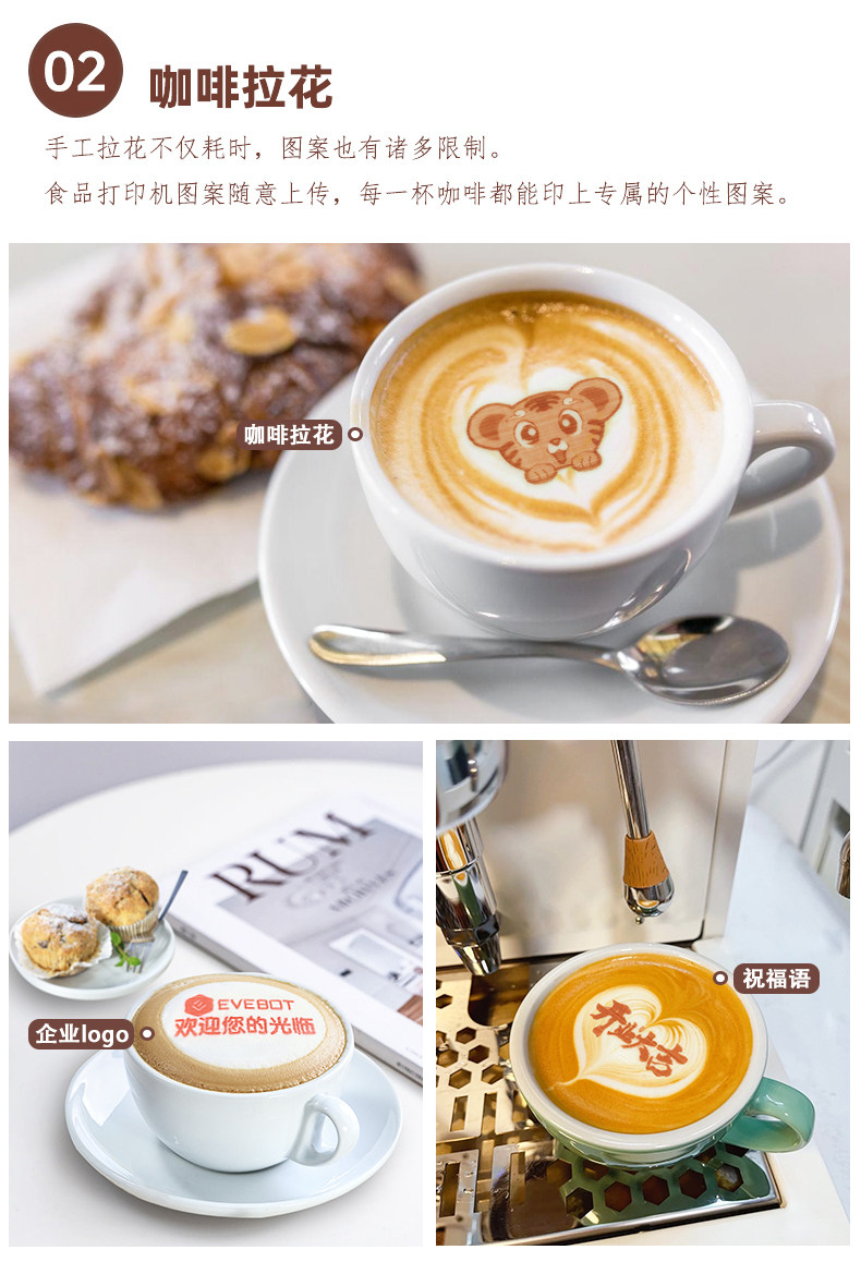 Máy in hình ảnh lên thực phẩm đồ uống cầm tay in phun hình 3D lên cafe bia rượu sữa chua sữa bọt cà phê Latte Macaron chính hãng EVEBOT